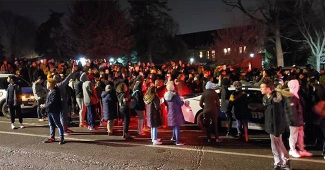 20日,學生進而發行抗議遊行活動,不同種族的學生在校內喊口號,要求校方回應訴求。 圖/利基.瓊斯提供